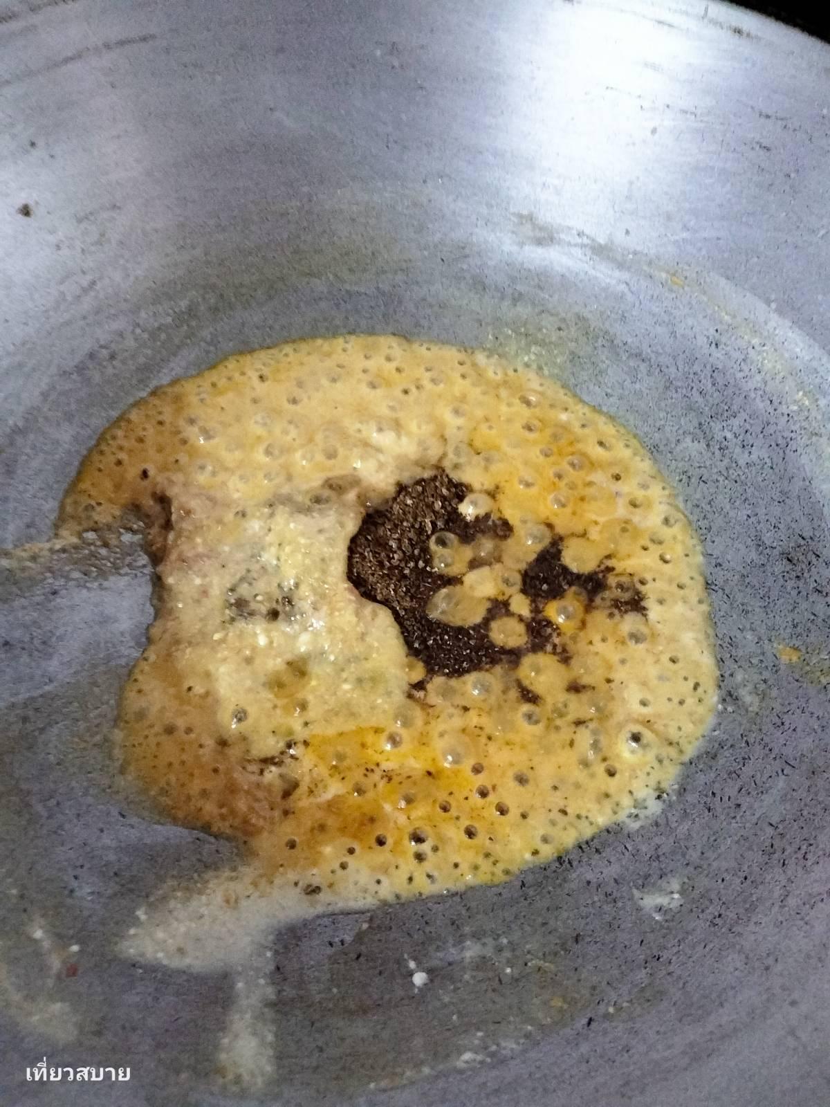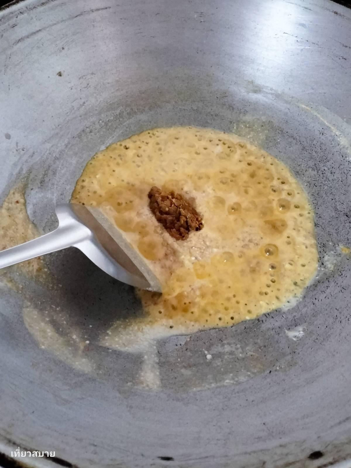 1. ผัดพริกแกงให้หอมแตกมัน