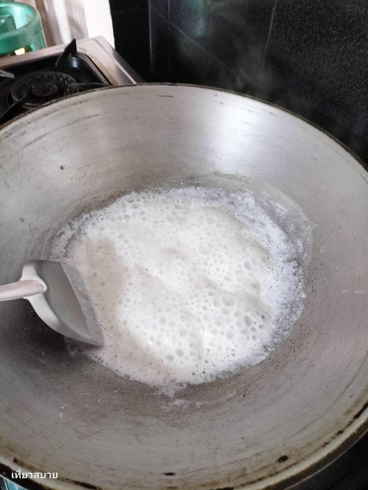 3. ปรุงรสด้วยน้ำตาลปี๊บและน้ำปลา ให้ได้รสเค็มนำ หวานตาม หอมกะทิ