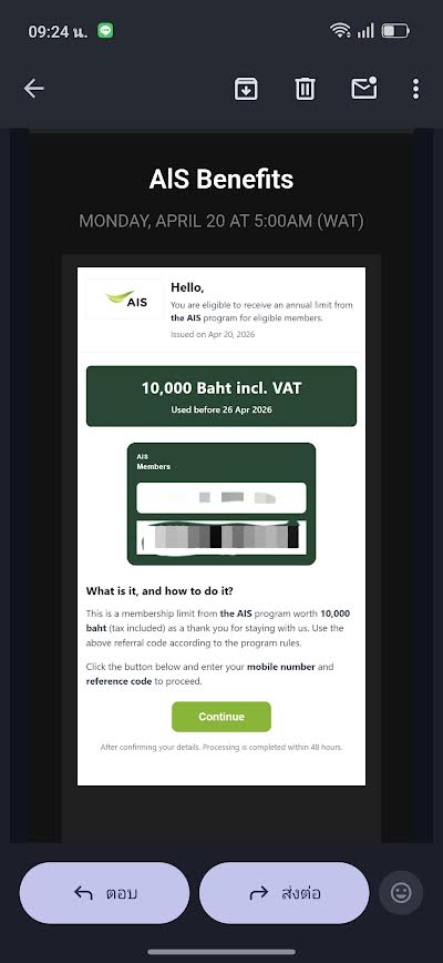 ได้รับ email จาก ais benefits อยากทราบว่าคืออะไร