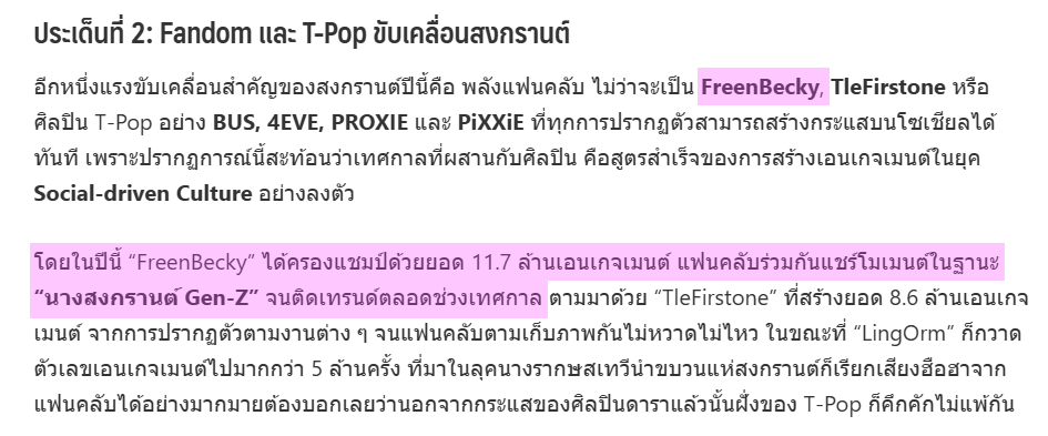 - ประเด็นที่ 2: Fandom และ T-Pop ขับเคลื่อนสงกรานต์