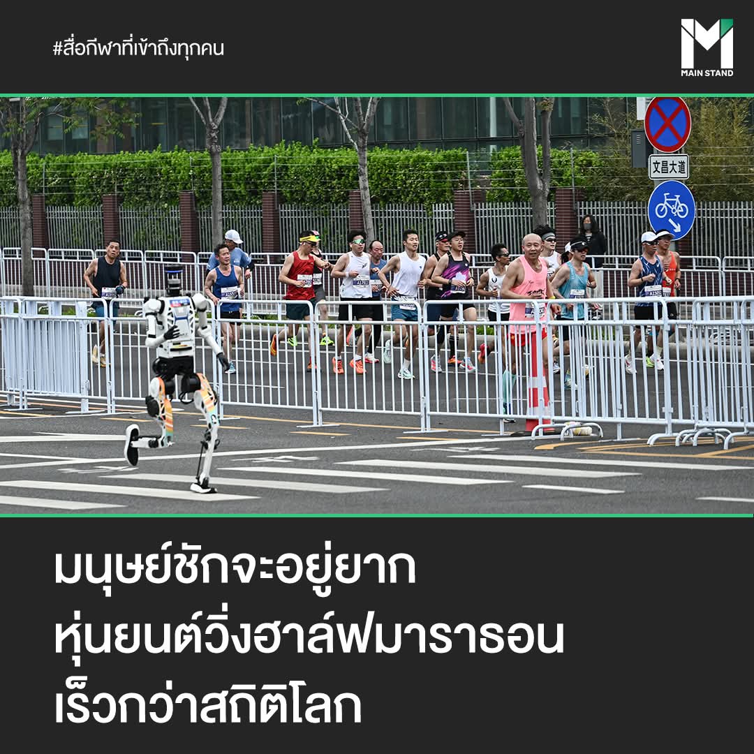 ในการแข่งขัน Beijing E-Town Half Marathon ที่กรุงปักกิ่ง ประเทศจีน นอกจากจะมีนักวิ่งและคนรักสุขภาพจำนวนมากลงถนน ยังมีหุ่นยนต์ลงแข่งร่วมกันด้วย เพียงแต่มีการแยกเลนวิ่งกันอย่างชัดเจน
