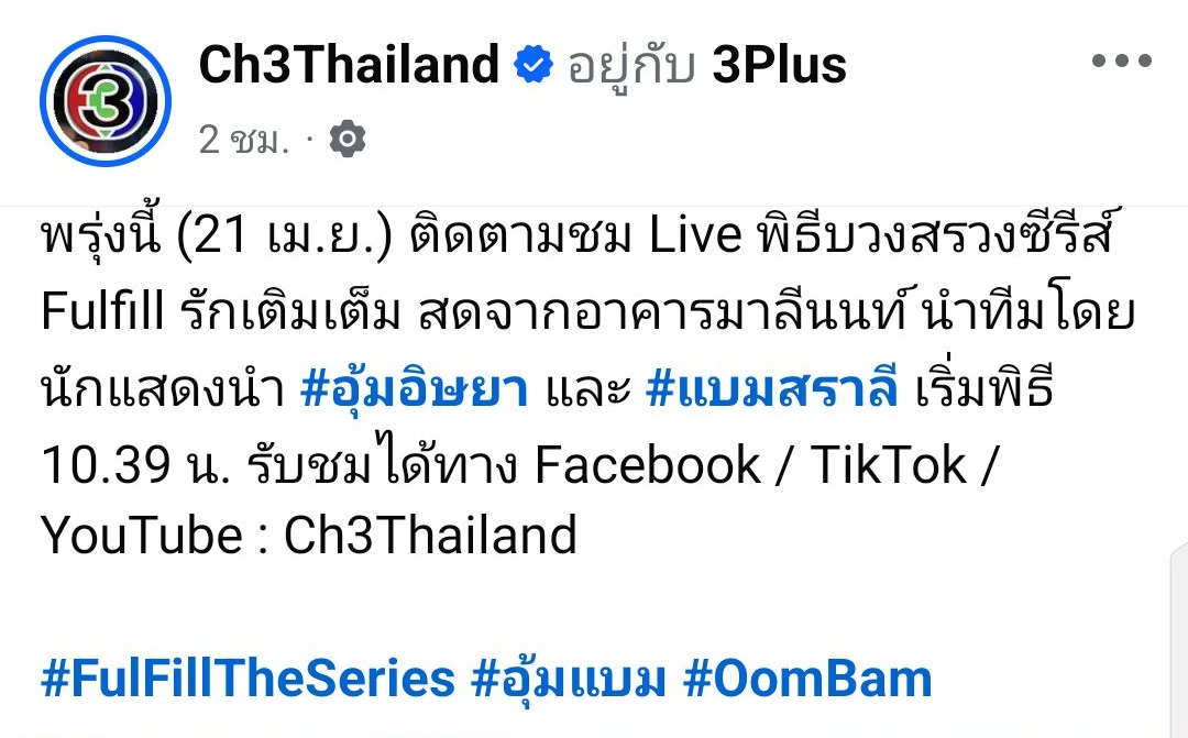 🗓️ พรุ่งนี้ (21 เม.ย.) 📌 ติดตามชม 🔴 Live พิธีบวงสรวงซีรีส์ Fulfill รักเติมเต็ม สดจากอาคารมาลีนนท์