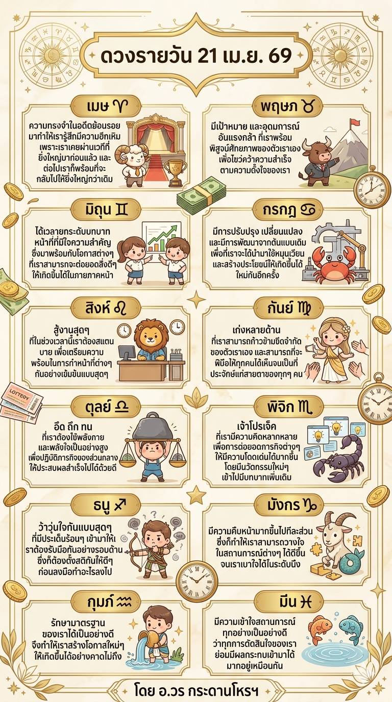 Ψ ☀ ดวงวันนี้ 21 เมษายน พ.ศ. 2569 โดย อ.วร กระดานโหรฯ ☀ 卐