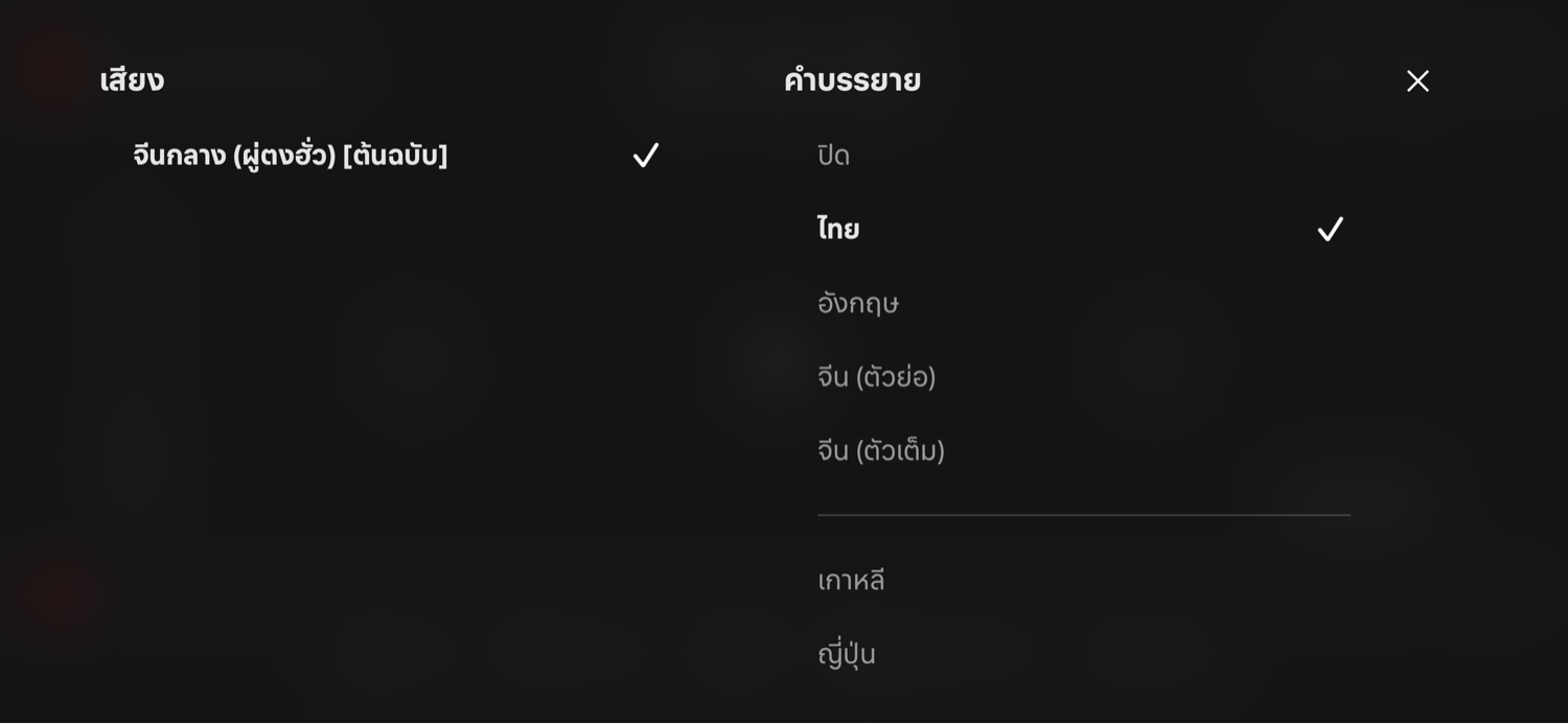เราใช้รายเดือน 419 บาท แต่ทำไมดูชีรีย์ “บันทึกเกล็กจันทร์” บน App มือถือเลือกเป็นพากษ์ไทยไม่ได้ ไม่มีตัวเลือกไทยให้เลือก