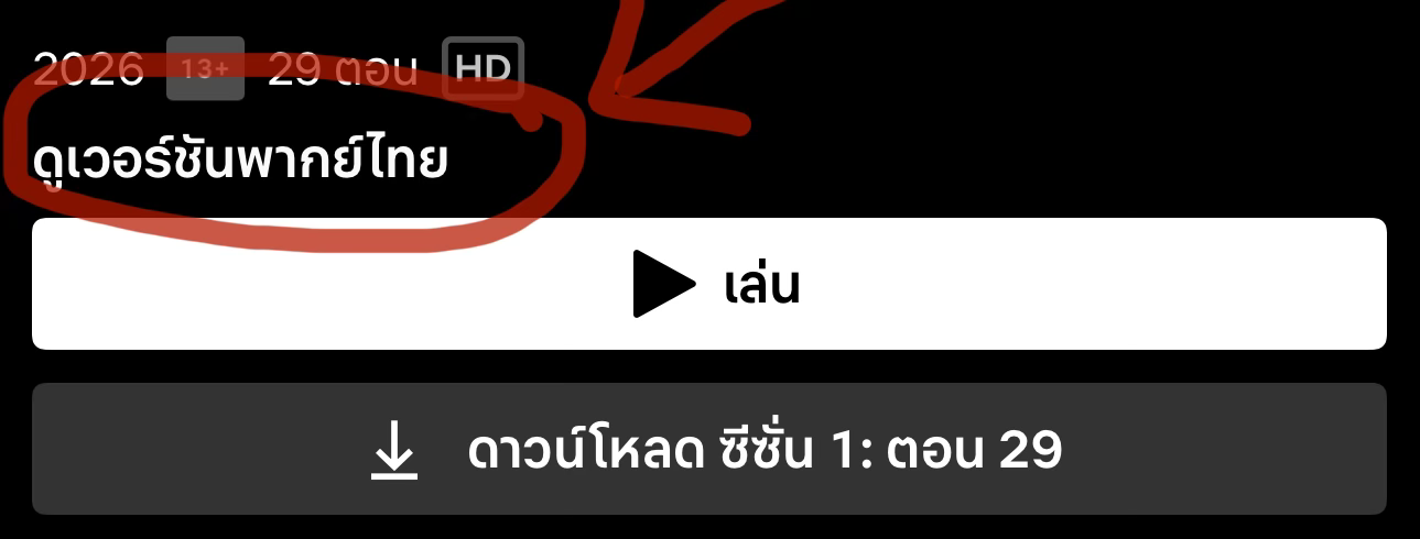 ของเพื่อน ของที่บ้านสามารถเลือกได้ แต่ App บนโทรศัพท์ Ip14 pm ของเรากับไม่มีให้เลือกพากษ์ไทย