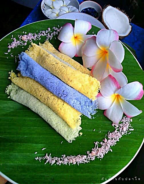 สีต่างๆ ใช้น้ำดอกอัญชัญ น้ำดอกคำฝอย น้ำใบเตย