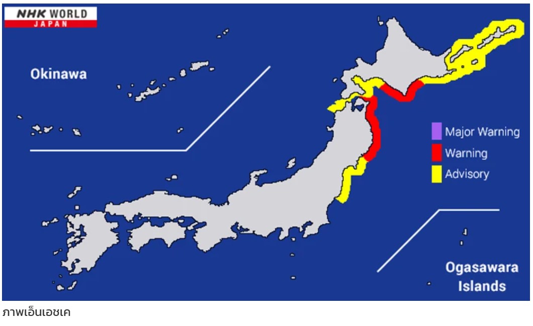 กรมอุตุฯ ญี่ปุ่น ประกาศเฝ้าระวังแผ่นดินไหวขั้นสูงสุด บริเวณนอกชายฝั่งฮอกไกโด/ซันริคุ หลังเกิดแผ่นดินไหวใหญ่ขนาด 7.5 นอกชายฝั่ง เผยมีความเป็นไปได้ที่จะเกิด Megaquake ระดับ 8 ขึ้นไปในพื้นที่ทางตอนเหนือ เตือนประชาชนใน 7 จังหวัดตอนเหนืออย่าประมาทเป็นอันขาด
