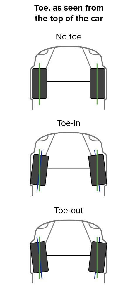 ตามความเข้าใจของผม รถยนต์ขับเคลื่อนล้อหลัง ปกติจะถูกออกแบบให้ล้อหน้ามีโทอิน (toe-in) อยู่เล็กน้อย เพื่อเวลาวิ่งล้อจะกลับมาเป็นโทศูนย์ (zero toe) โดยอัตโนมัติ และกลับกันสำหรับรถขับหน้า