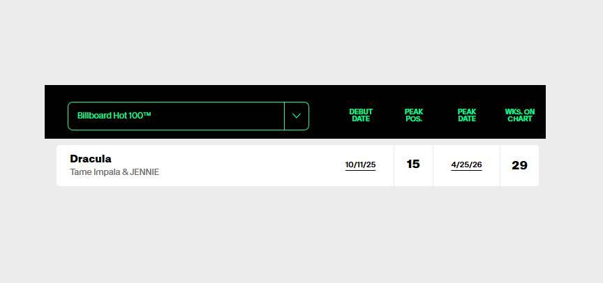 🧛♀️ Dracula – JENNIE Remix ขึ้นสู่อันดับ #15 (New Peak) บนชาร์ต Billboard Hot 100 ประจำสัปดาห์นี้