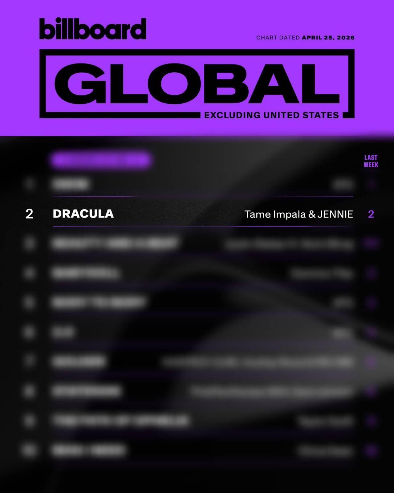 เพลง Dracula (JENNIE Remix) ขึ้นสู่อันดับสูงสุดใหม่ที่ #15 บนชาร์ต Billboard Hot 100 ขณะเดียวกันก็ขึ้นสู่อันดับสูงสุดใหม่ที่อันดับ #2 บนชาร์ต Billboard Global 200 และยังคงรักษาระดับดังกล่าวไว้ได้บนชาร์ต Billboard Global Excl. U.S. ในสัปดาห์นี้ 👏