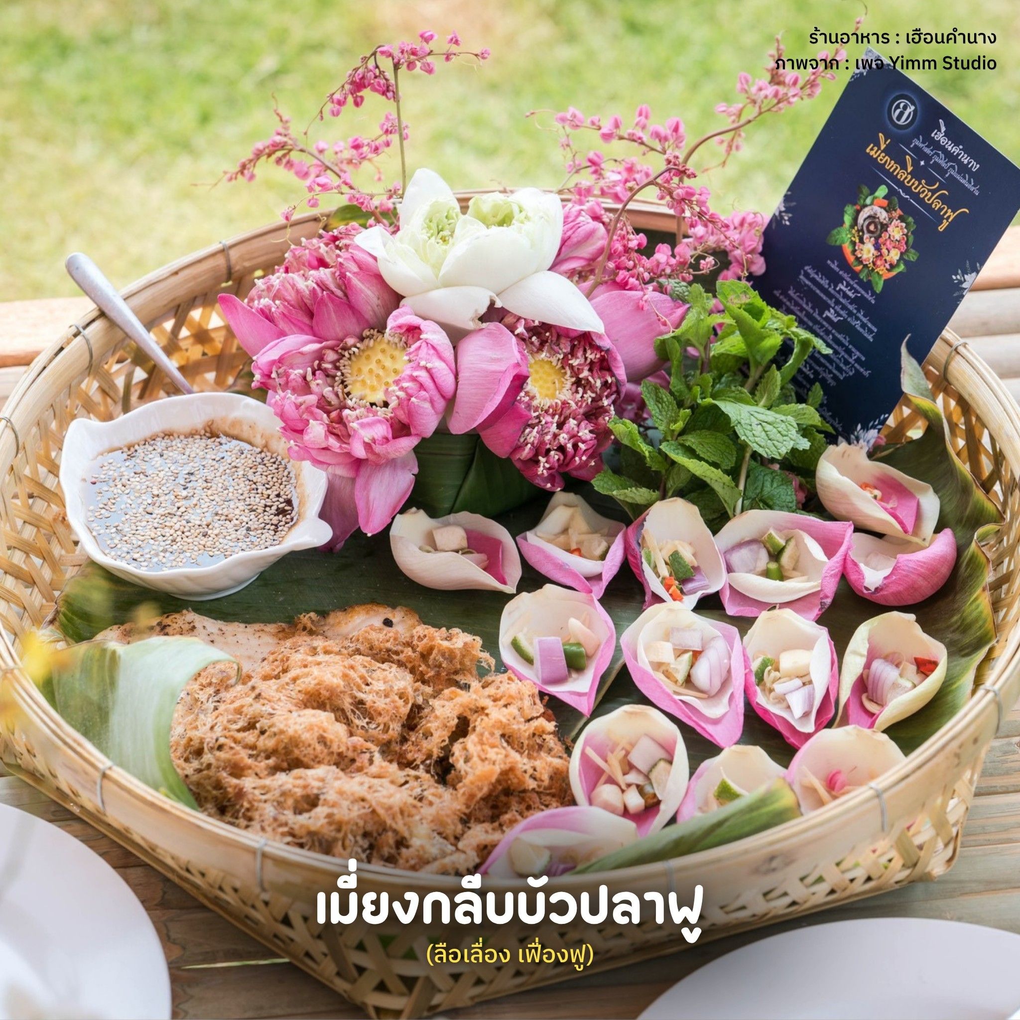 เมี่ยงกลีบบัวปลาฟู : บัวเป็นพืชที่สื่อถึงความบริสุทธิ์ ความดีงาม และปลาถือเป็นสัญลักษณ์ของความอุดมสมบูรณ์ เหลือกินเหลือใช้ และโชคลาภ (Cr. google)