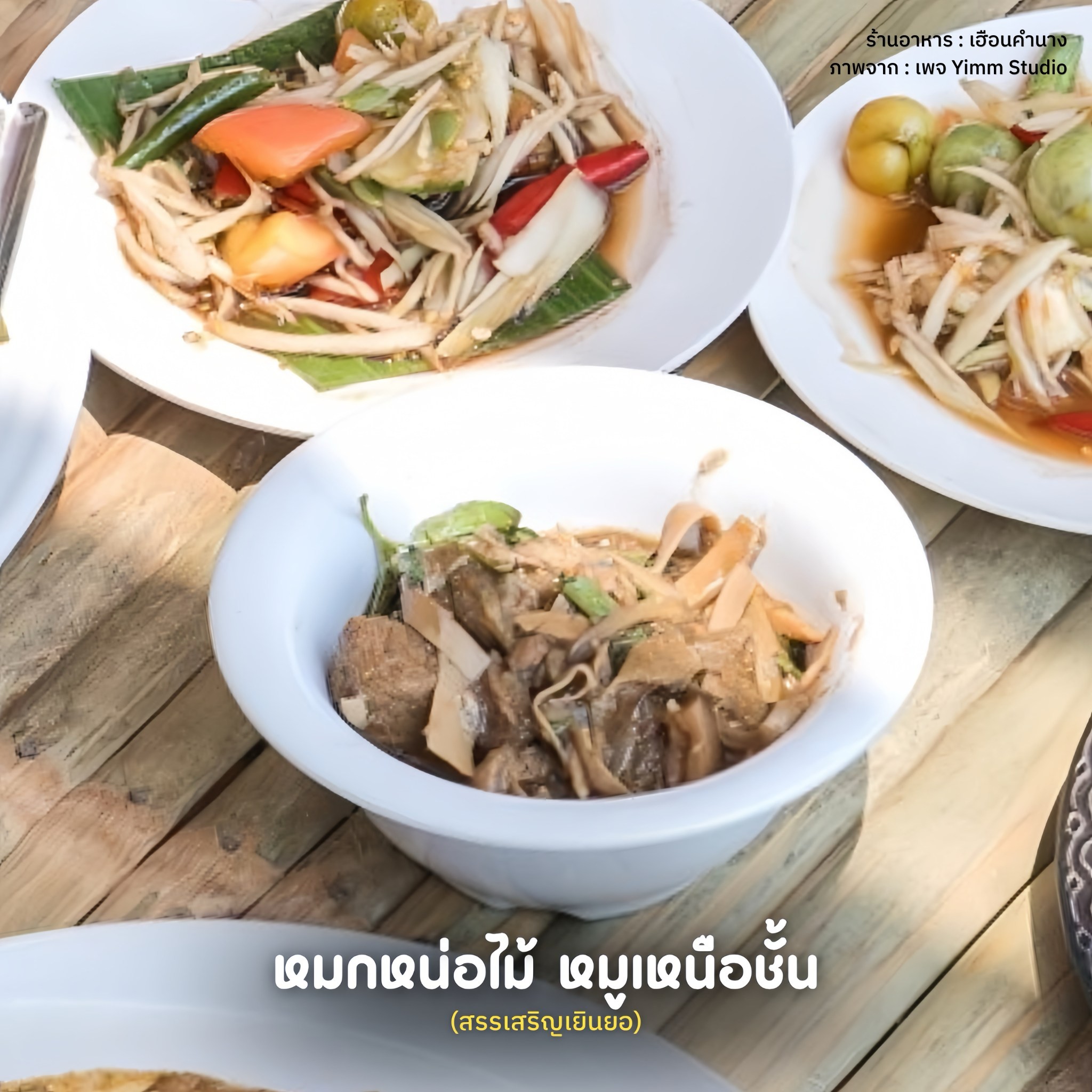 หมกหน่อไม้ หมูเหนือชั้น : หมูเป็นสัญลักษณ์ของความอุดมสมบูรณ์ ความมั่งคั่งร่ำรวย โชคลาภ และวาสนา หน่อไม้ สื่อถึงการเจริญเติบโตที่งอกงาม (Cr. google)