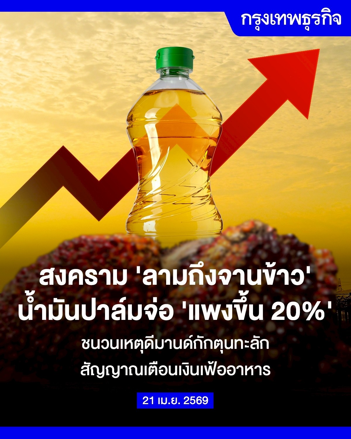 ผลกระทบสงครามอิหร่านไม่ได้หยุดแค่ที่ปั๊มน้ำมัน แต่กำลังลุกลามมาถึง “จานอาหาร” เมื่อความต้องการ “น้ำมันปาล์ม” พุ่งสูงขึ้นอย่างรวดเร็ว จากการกักตุนและการใช้ “ทดแทนน้ำมันเชื้อเพลิง” ส่งผลให้ราคาน้ำมันปาล์มดิบพุ่งแตะระดับสูงสุดในรอบปี และอาจกลายเป็นชนวนเงินเฟ้ออาหารในระยะถัดไป
