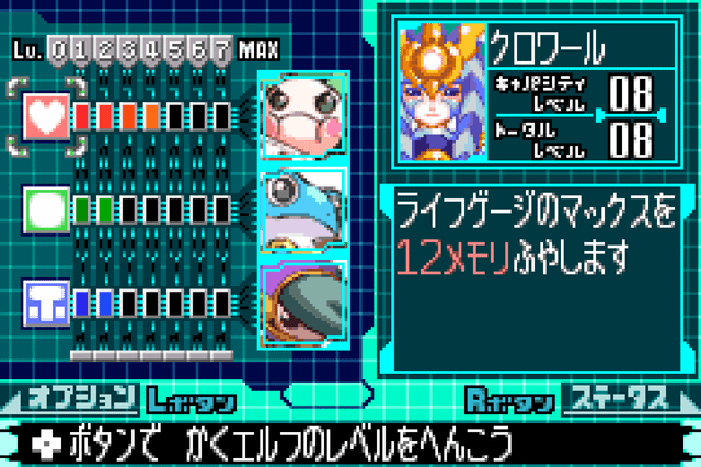 เราสามารถอัปเลเวลเอลฟ์ได้โดยใช้ E-Crystal เพื่อปลดล็อกขีดจำกัดความสามารถ