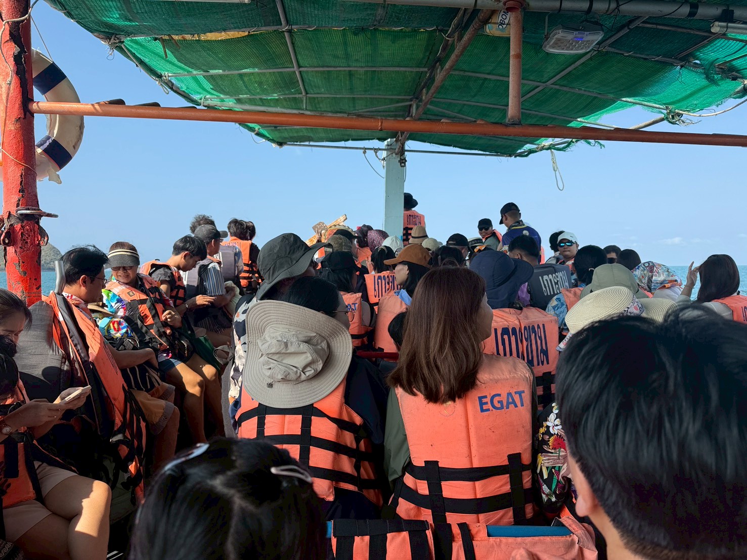 เรือใช้เรือประมงดัดแปลงมารับผู้โดยสาร นั่งได้ ราวๆ ซัก 60-70 คนต่อลำ ใช้เวลาแค่ 15 นาที
