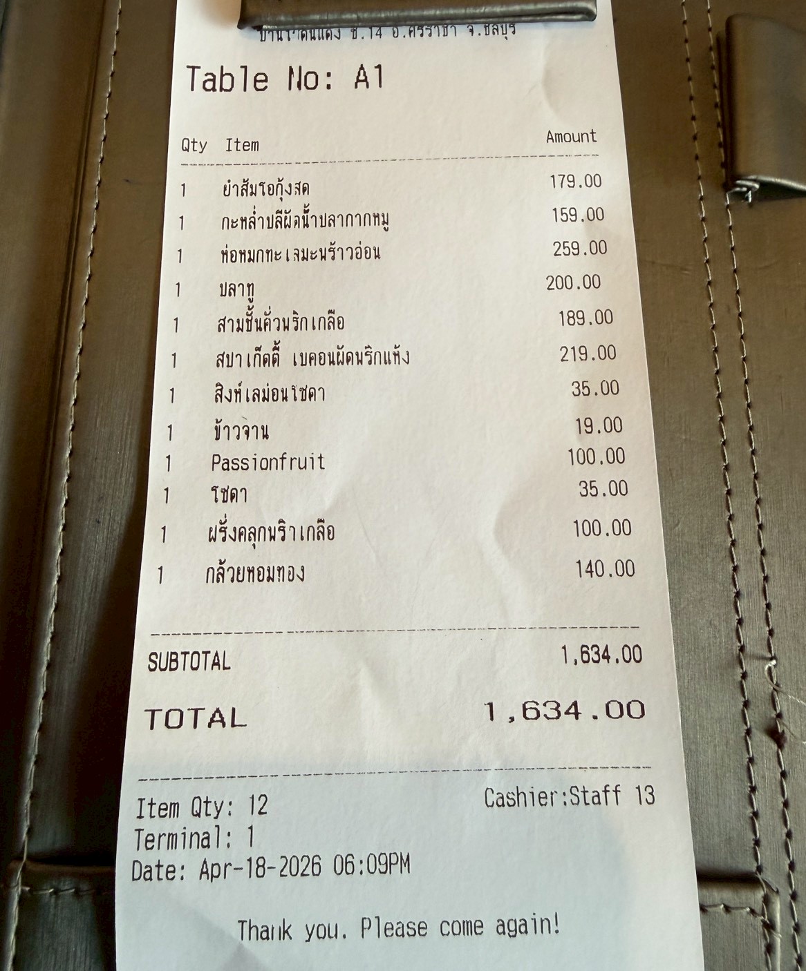 ดูราคาอาหารตามบิล กับ ปริมาณ และรสชาติ ผมว่า ถือว่าถูกเลย แหละ เย็นบรรยากาศริมทะเลชิลมาก