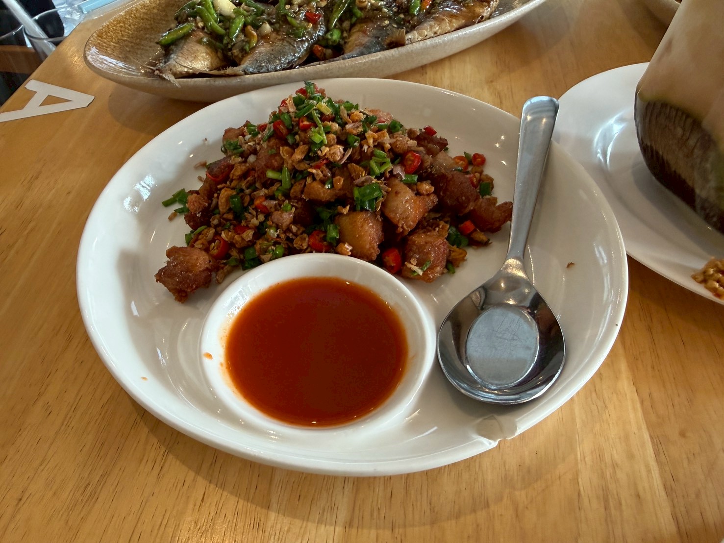 มื้อนี้ นอกจากปูสั่ง ตำถั่วหมูกรอบ จานนึง 200 อร่อย นะชอบ