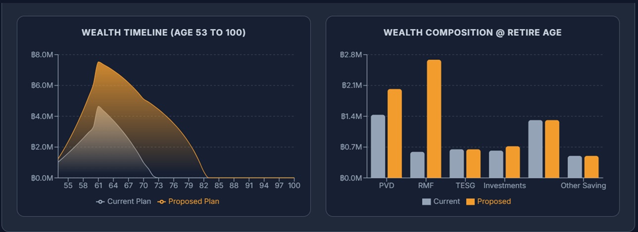 4. Before & After Scenario Comparison เปรียบเทียบแผนปัจจุบัน vs แผนที่ปรับแล้วแบบ Side-by-Side ได้เลยครับ