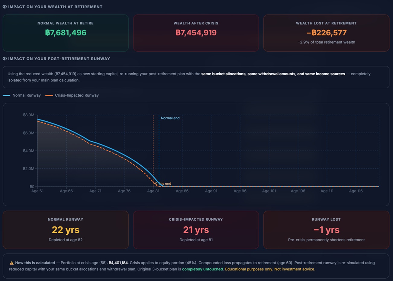 การนำ SoRR เข้าไปอยู่ในแผนเกษียณจริงๆ แบบ Dynamic และ Flexible ที่คุณสามารถเลือกวิกฤต เลือกช่วงเวลา และดูผลกระทบต่อรันเวย์ของคุณได้ทันที