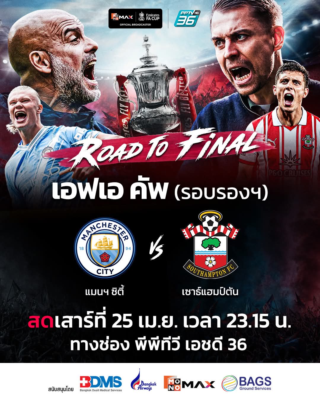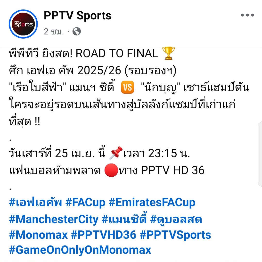 📺 พีพีทีวี ยิงสด! ROAD TO FINAL 🏆 เอฟเอ คัพ 2025/26 รอบรองฯ | "เรือใบสีฟ้า" แมนฯ ซิตี้ 🆚 "นักบุญ" เซาแธมป์ตัน