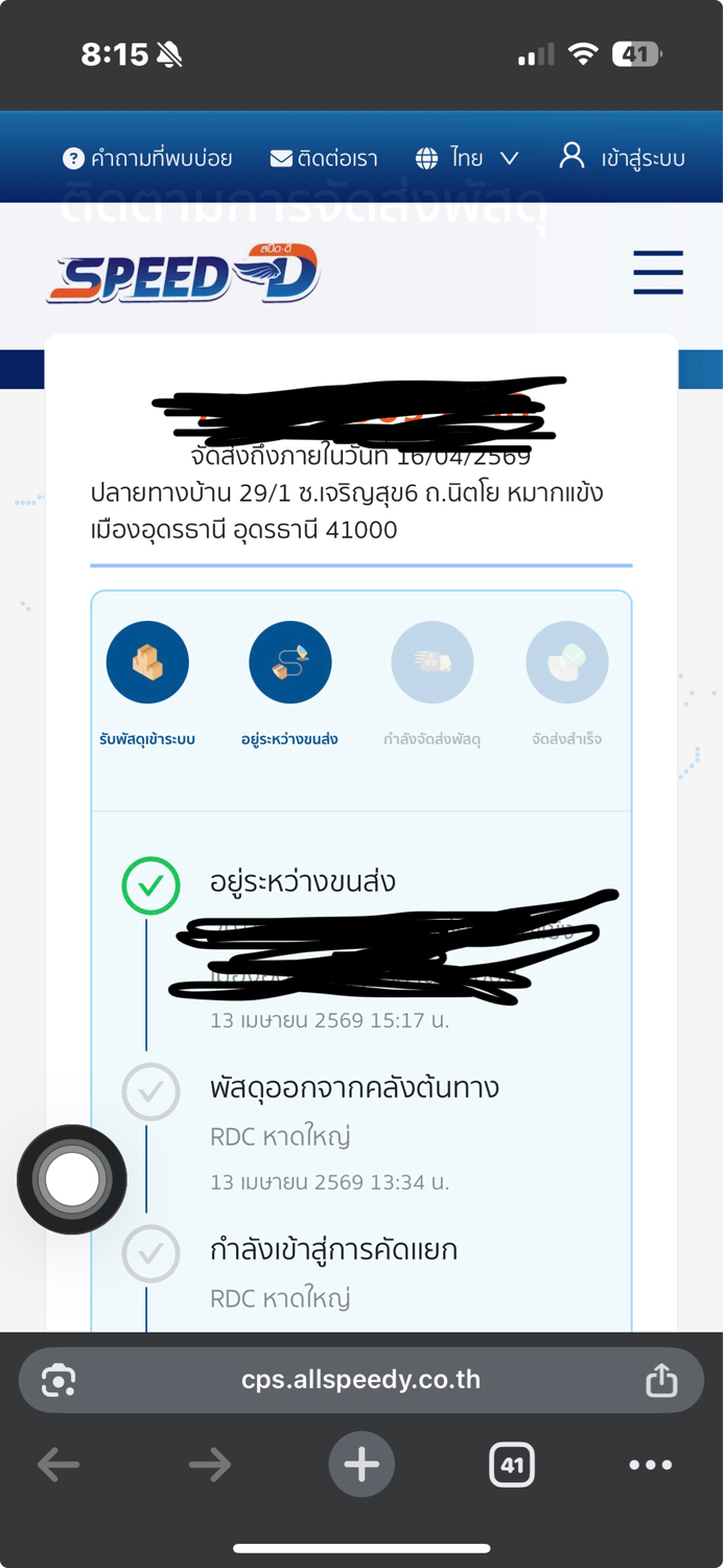 ส่งของช้ามากกกกก ช้ามากที่สุด ส่งของภายในประเทศ ตอนนี้9วันแล้วของยังไม่ถึง ส่ง12 เมษา วันนี้ 21 เมษา ของยังส่งไม่ถึง คือถ้าส่งกับขนส่งอื่นช้าสุดไม่เกิน4วัน อันนี้ปาไป9 และยังไม่มีวี่แววที่จะส่งถึง เราโทร้ร่งกับคอลเซ็นเตอร์3วันติดก็ยังไม่เป็นผล เห้ออท้อมากก