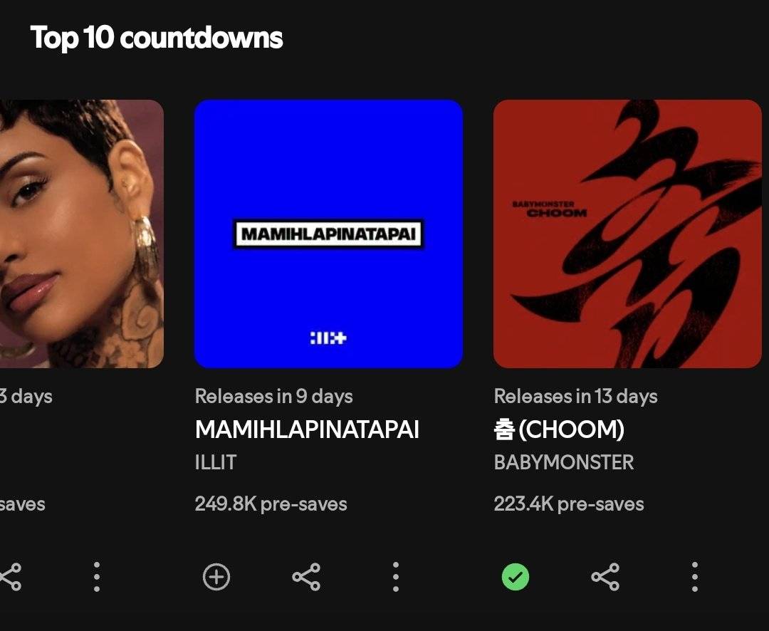 BABYMONSTER 3rd MINI ALBUM CHOOM ได้เข้าสู่ Top 10 Countdown Pre-Save Spotify ด้วยยอด 223,400 Pre-Save สุดยอด