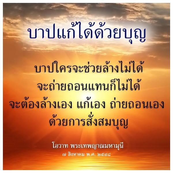 บาปใครจะช่วยล้างไม่ได้ จะถ่ายถอนแทนก็ไม่ได้ ต้องล้างเองแก้เอง ถ่ายถอนเองด้วยการสั่งสมบุญ