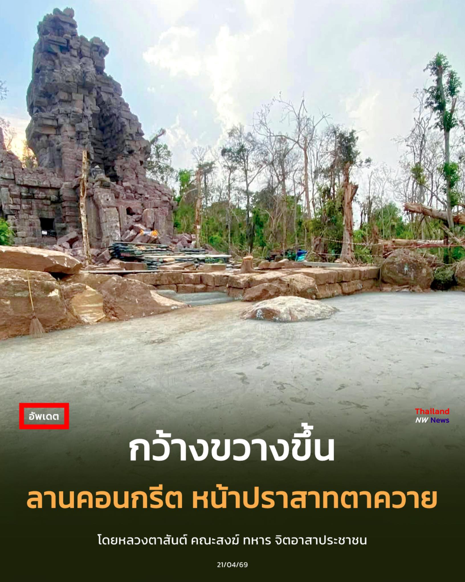 ลานคอนกรีต หน้าปราสาทตาควาย เตรียมพร้อมสำหรับ การจัดงาน พิธีบวงสรวง