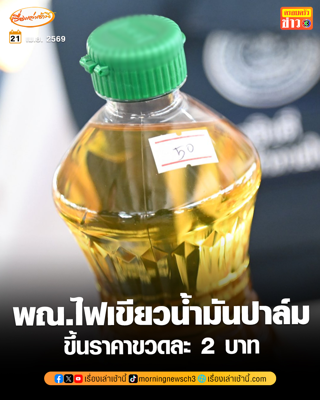 อั้นไม่ไหว! พาณิชย์ ไฟเขียว “น้ำมันปาล์ม” ขึ้นราคาขวดละ 1-2 บาท ขยับเป็น 49-50 บาท