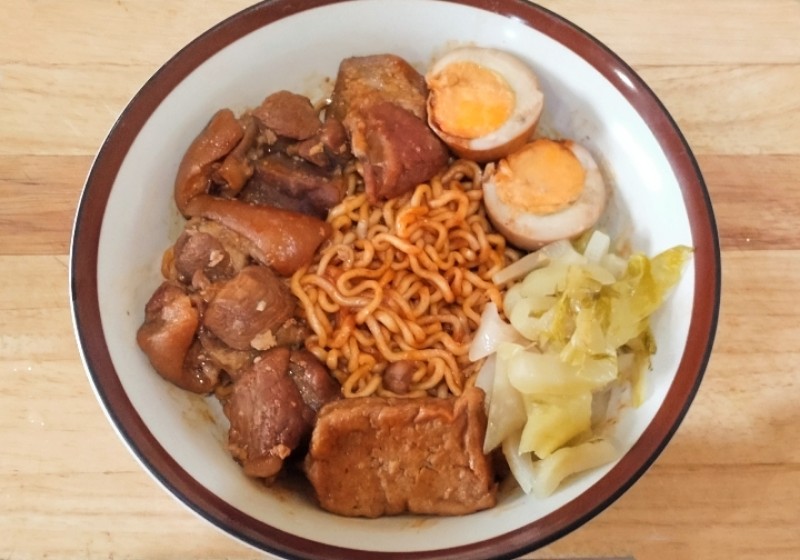 เข้าครัวต้ม บะหมี่กึ่งใส่ขาหมูเต้าหู้กับไข่พะโล้
