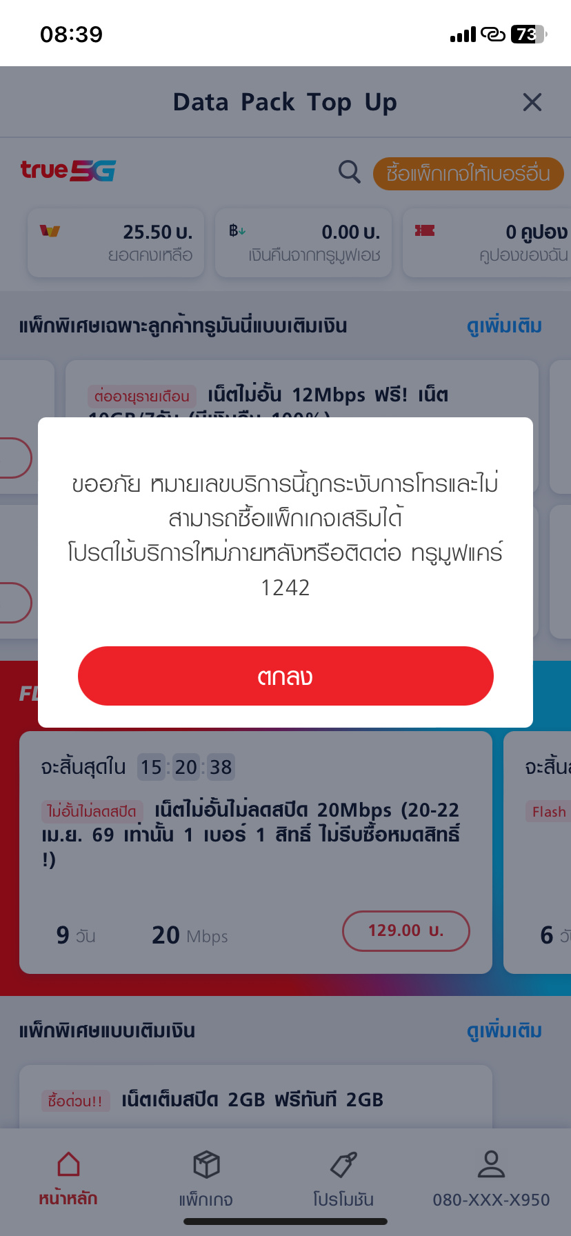 ทรูมูฟ ซื้อแพ็คเกจเน็ตไม่ได้