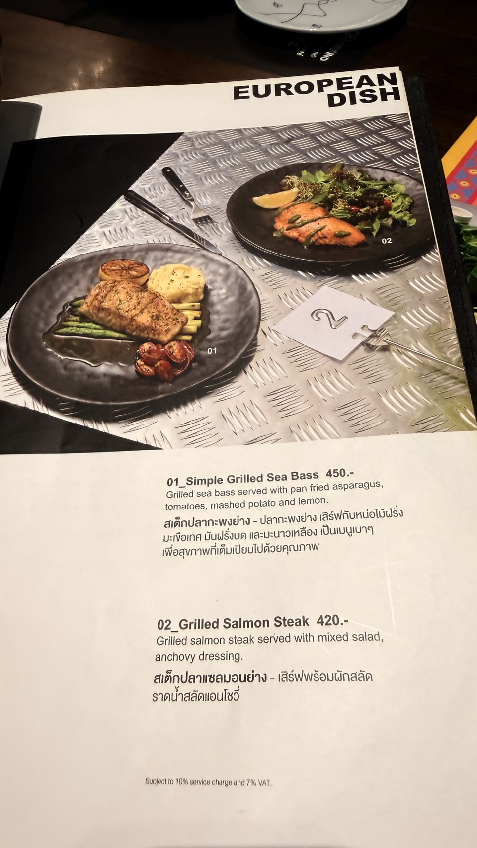 อาหารที่สั่ง (ทางร้านมีออเดิฟ (ฟรี) ขนมปัง (เนย) ให้ คนละ 1 ชิ้น)