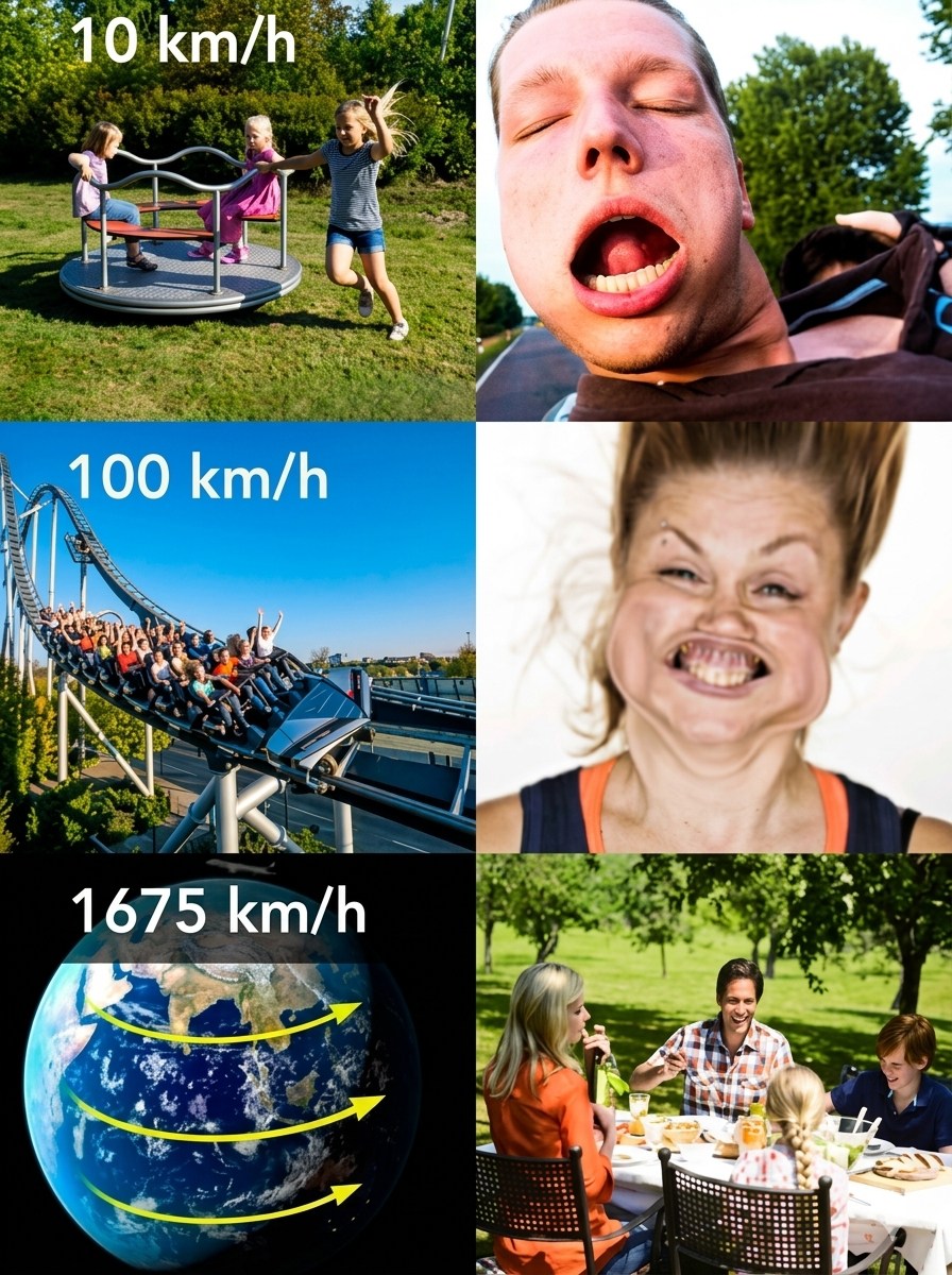 โลกของเราก็ดำเนินไปตามหลักการเดียวกันนี้ บริเวณเส้นศูนย์สูตร โลกกำลังหมุนรอบตัวเองด้วยความเร็วสูงถึง 1,675 กิโลเมตรต่อชั่วโมง