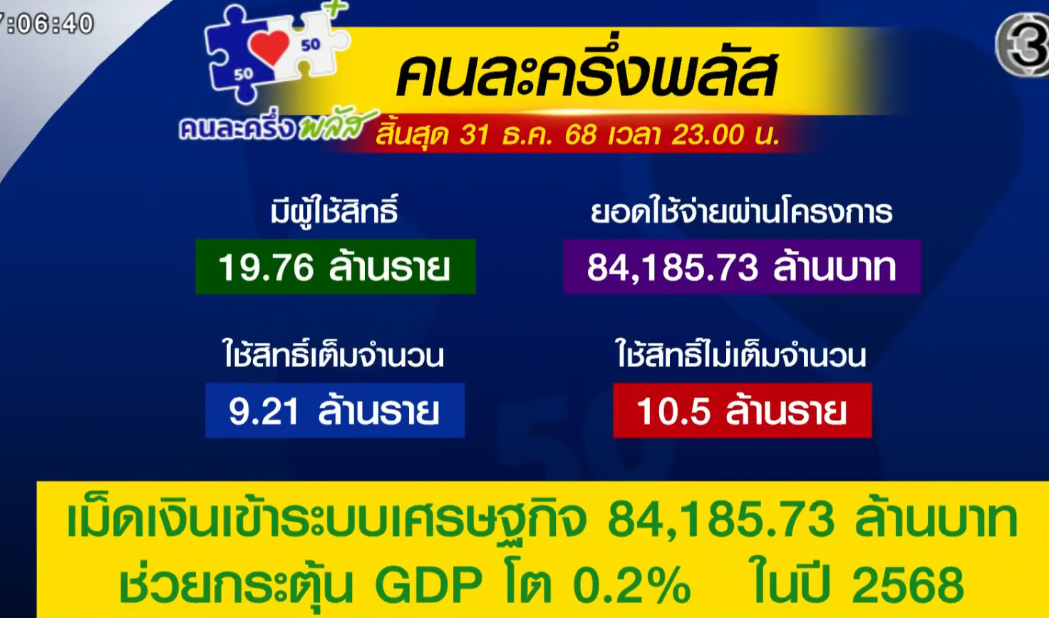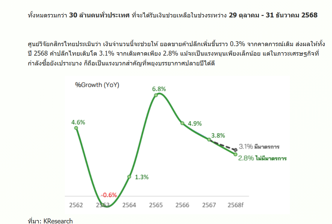 ผลต่อ GDP จำกัด: การประเมินโครงการคนละครึ่งพลัสล่าสุดพบว่าช่วยดัน GDP ปี 2568 โตเพิ่มขึ้นเพียง