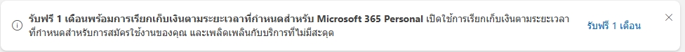 รับฟรี 1 เดือนพร้อมการเรียกเก็บเงินตามระยะเวลาที่กำหนดสำหรับ Microsoft 365 Personal"