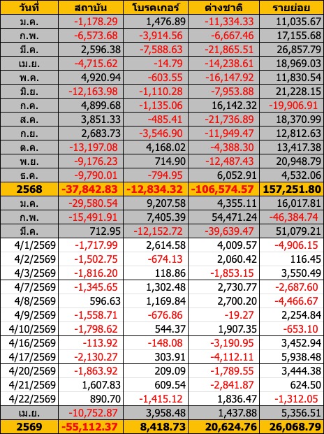 Sinthorn Summary 22/4/2569 : ต่างชาติซื้อสุทธิ 1,836.47 ลบ.