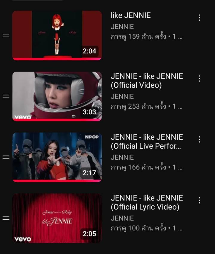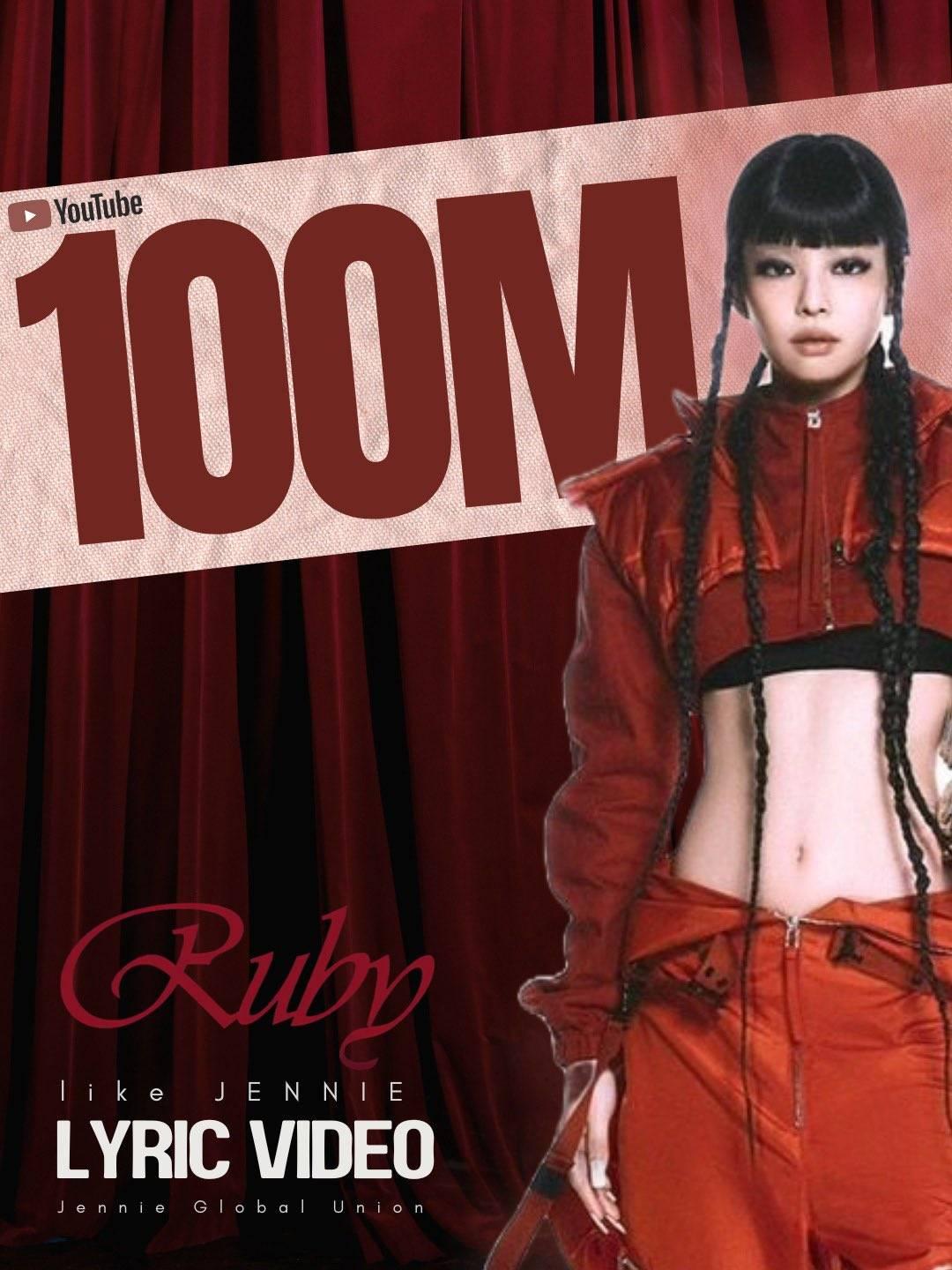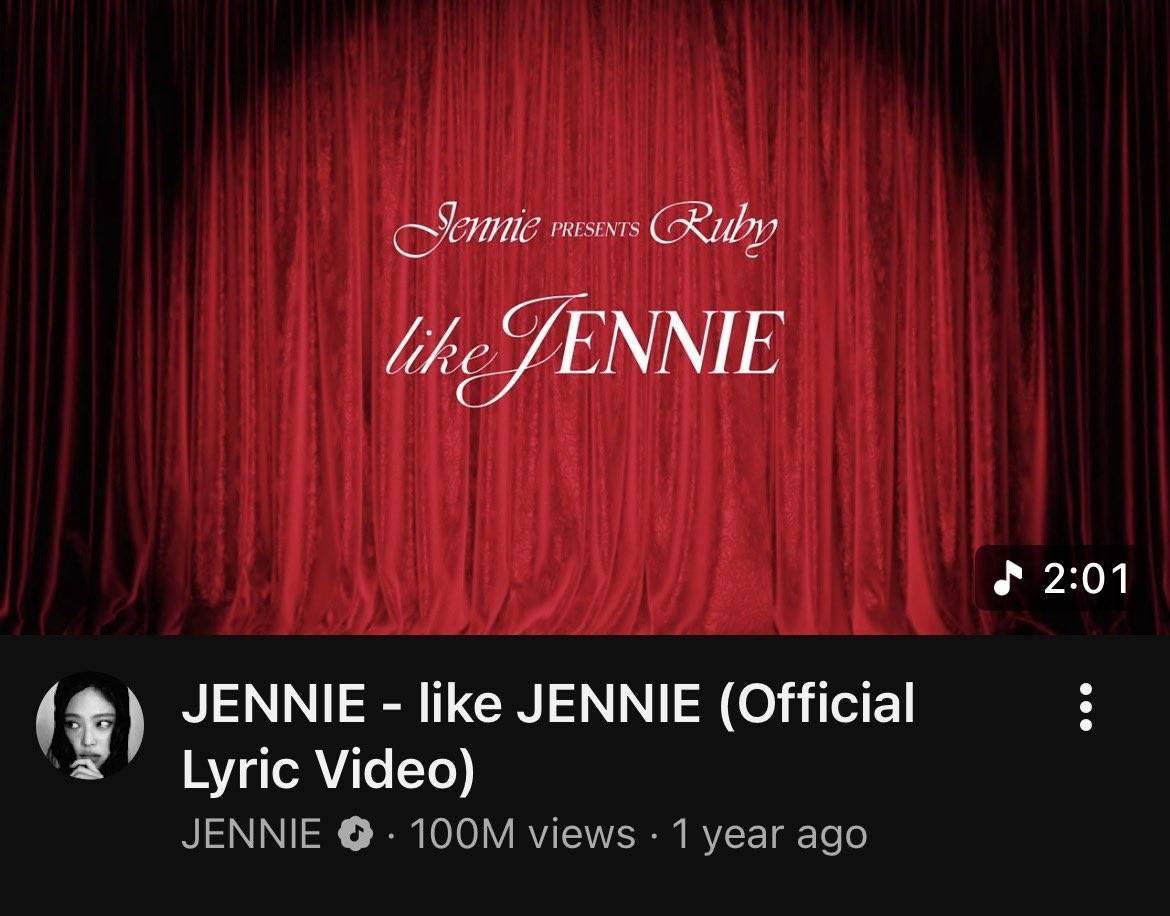 'Like JENNIE' (Official Lyric Video) ของเจนนี่มียอดวิวบน YouTube ทะลุ 100 ล้านครั้ง ถือเป็นวิดีโออย่างเป็นทางการคลิปที่ 15 ของเจนนี่ที่ทำได้บน YouTube 🥳