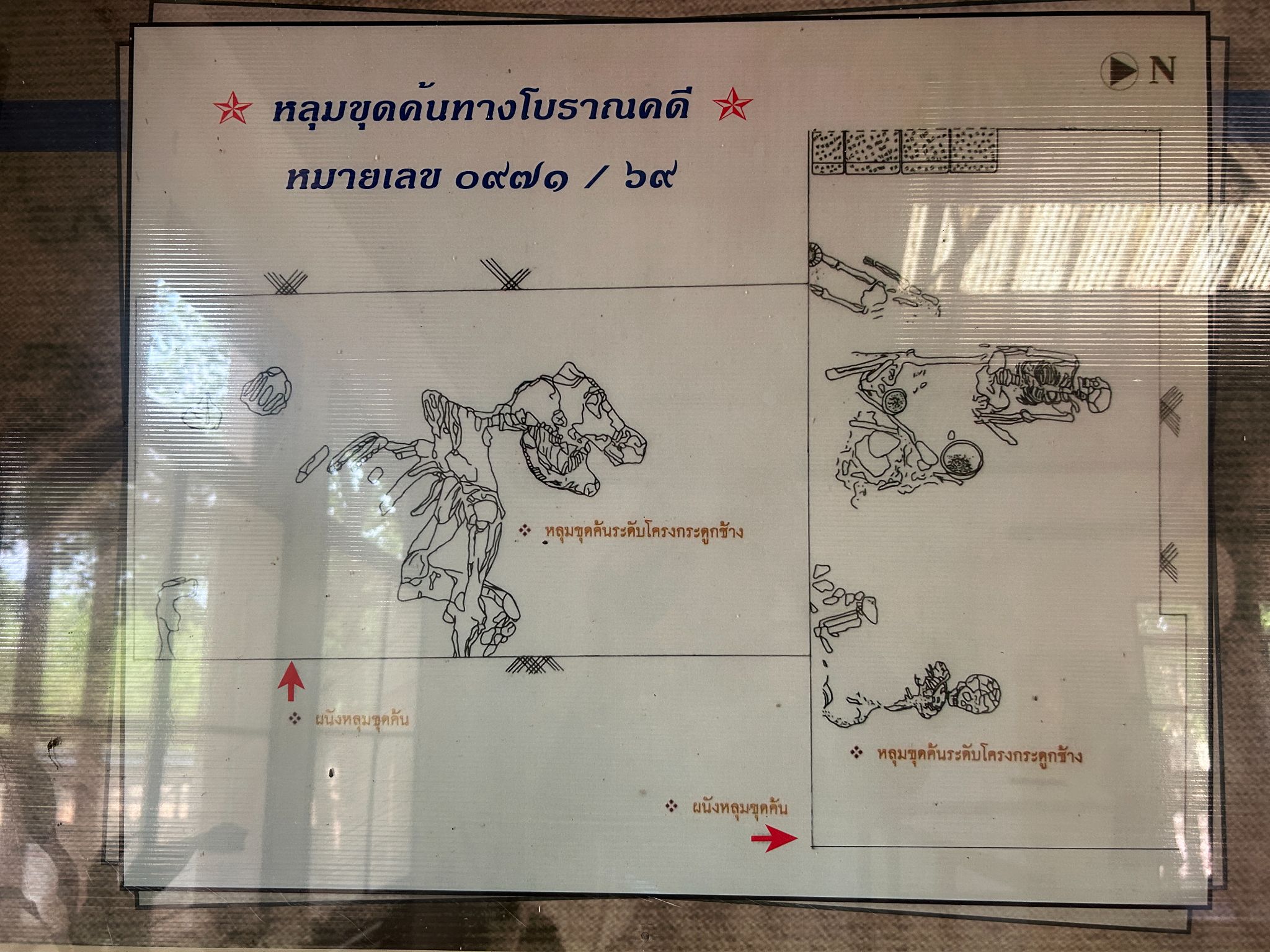 จุดที่ 2 อาคาร แสดงหลุมศพ โครงกระดูกคนและหม้อ และ โครงกระดูกช้าง ส่วนบริเวณด้านช้าง มีปราสาทขนาดเล็กอยู่ใกล้ ๆ ภายในมีฐานโยนี ( เดาเอา )