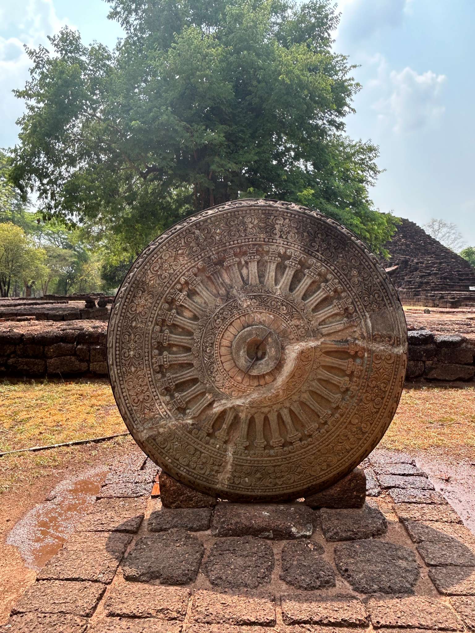จุดเด่นอีกอันคือ ธรรมจักร ซึ่งเป้นเหมือนสัญลักษณ์ ศิลปะทาราวดี