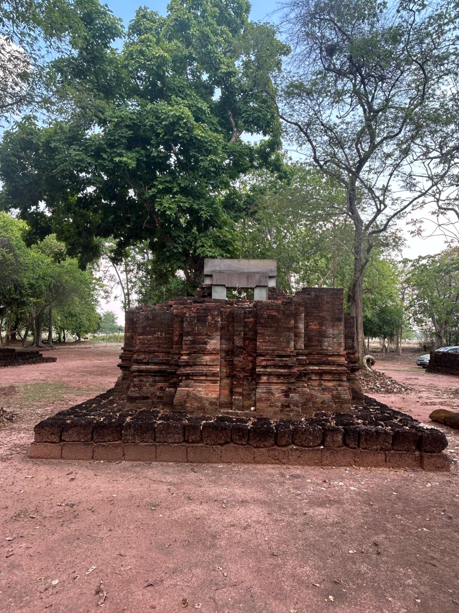 ที่วัดคูบัว แต่ต่างกันที่ฐานทรงสี่เหลี่ยมที่มีลายคนแคระ ( กลายเป็นสัญญลักษณ์ ของอุทยานแห่งนี้ใช้โปรโมท )