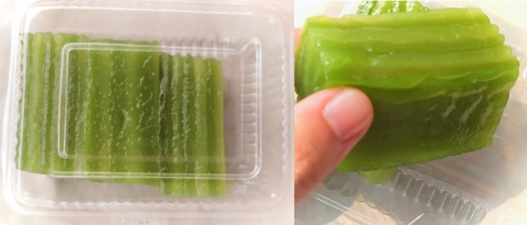 เปิดกล่องมา กลิ่นหอมมาก สีสวย หอมใบเตย นุ่ม ๆ หวานไม่มาก แต่อร่อยดีค่ะ ได้มาเป็นของฝาก 2 กล่อง ไม่ใสสารกันบูด ต้องเก็บเข้าตู้เย็น!