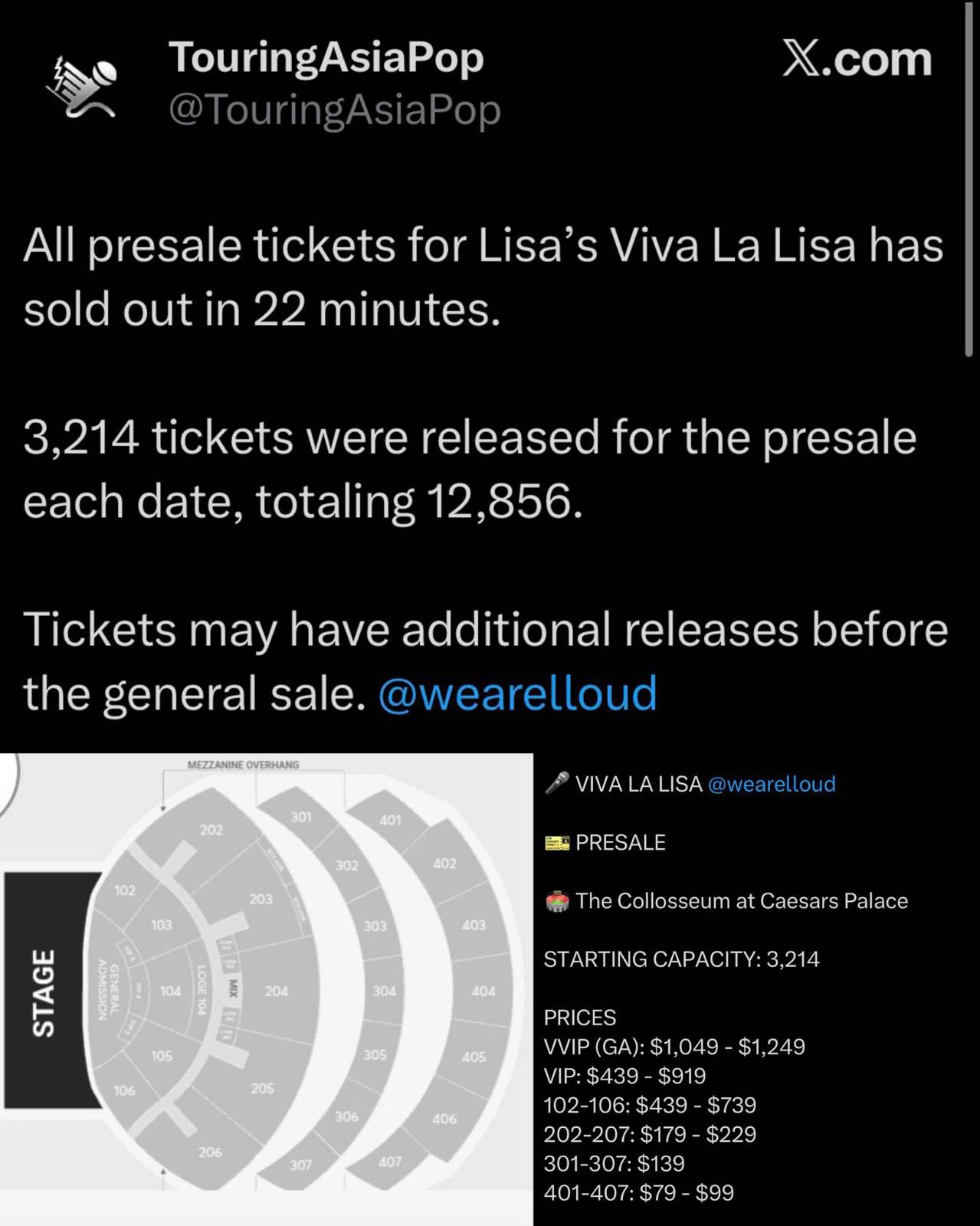 [ 260423 ] #Lisa - บัตรรอบพรีเซล #VIVALALISA ที่ลาสเวกัส หมดภายใน 22นาที