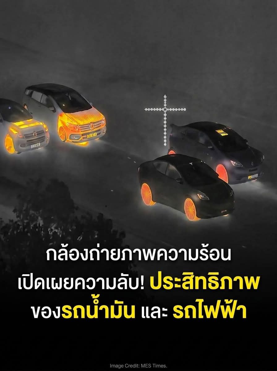 ภาพถ่ายความร้อนเปิดเผยความลับประสิทธิภาพ ของรถน้ำมัน และ รถไฟฟ้า