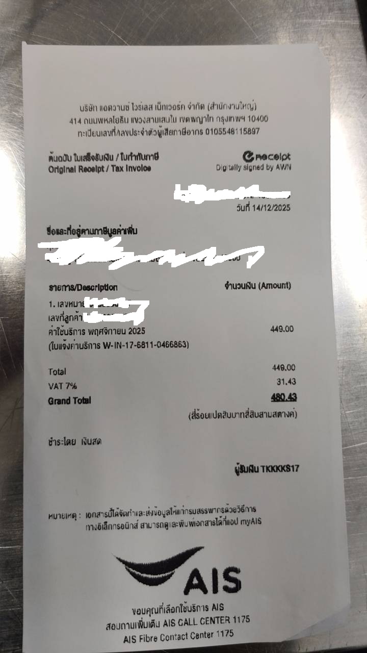 ขอใบเสร็จ AIS ที่ศูนย์บริการได้ไหม