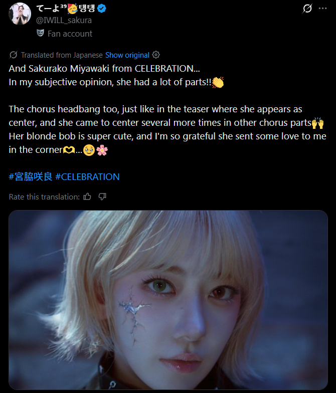 [Spoil] คลิกเพื่อดูข้อความที่ซ่อนไว้แล้วก็ Sakura Miyawaki จาก CELEBRATION…