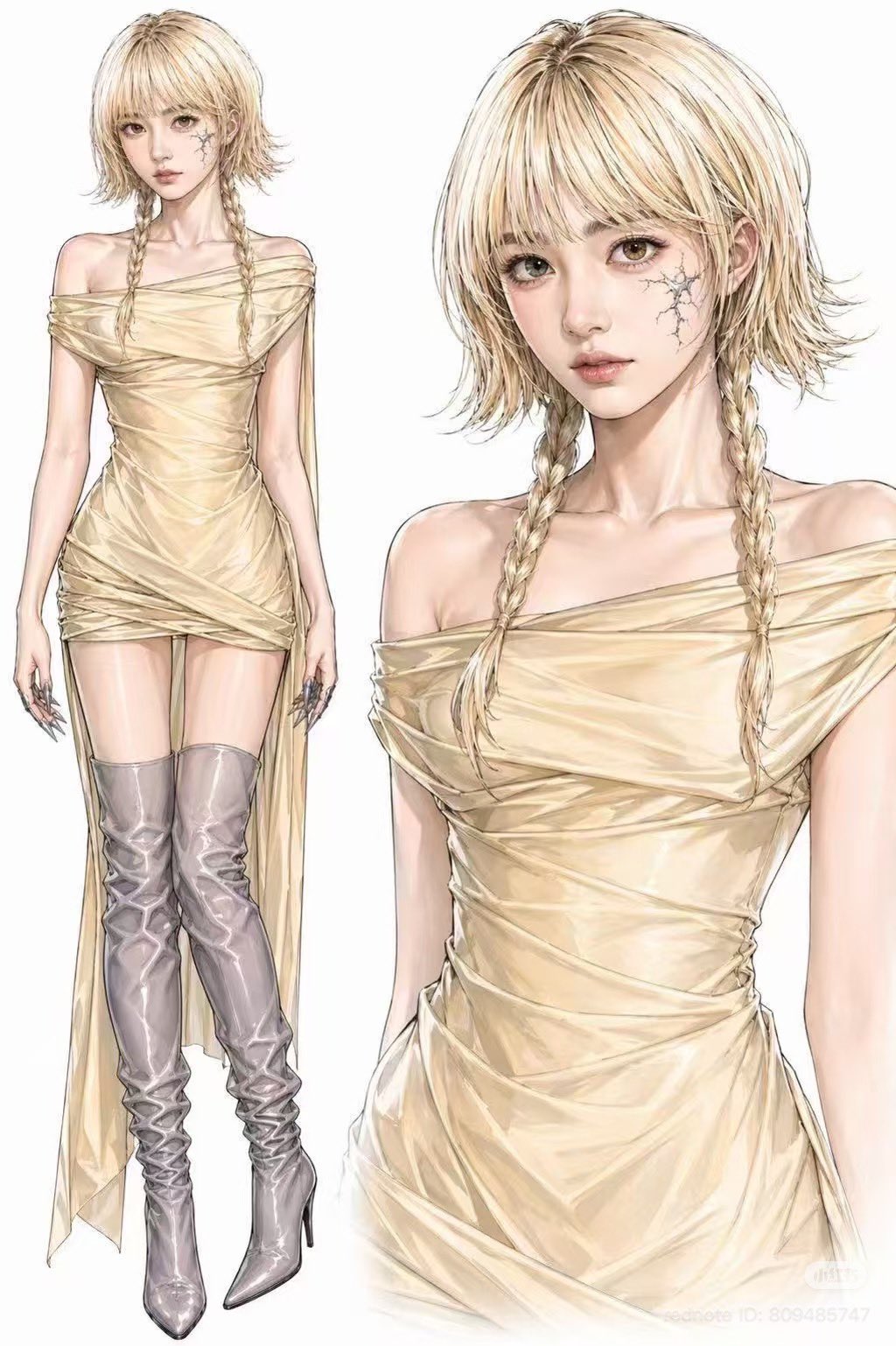 Yunjin – ใส่อะไรที่เหมือนคาร์ดิแกนซีทรู คลุมบริเวณแขนขวาและขาซ้าย ใส่กางเกงขาสั้นกับรองเท้าบูทสีเงิน