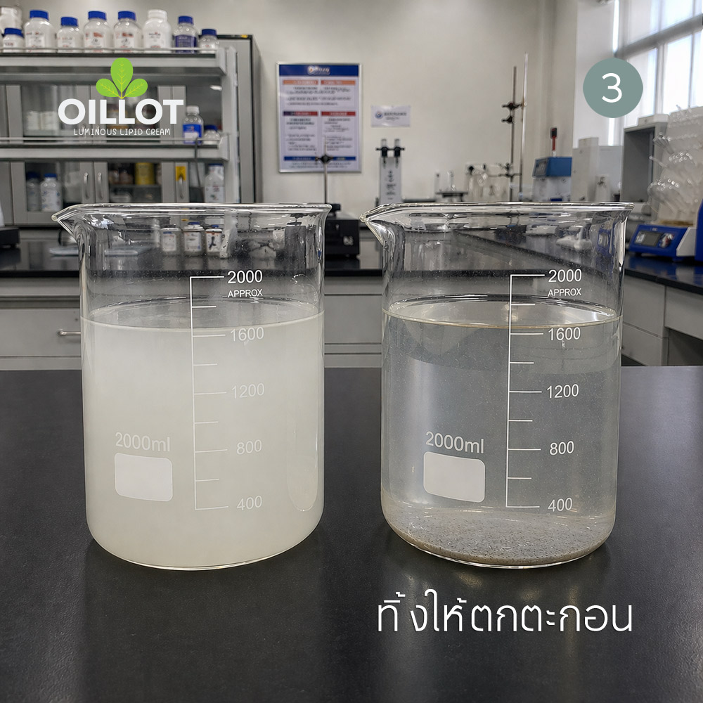 เมื่อเวลาผ่านไป อนุภาคเล็ก ๆ เหล่านี้จะรวมตัวกันเป็นก้อนที่มีขนาดใหญ่และหนักขึ้น (Flocculation) ก่อนจะค่อย ๆ ตกตะกอนลงสู่ก้นภาชนะ ส่งผลให้น้ำด้านบนกลับมาใสสะอาดขึ้นอย่างเห็นได้ชัด