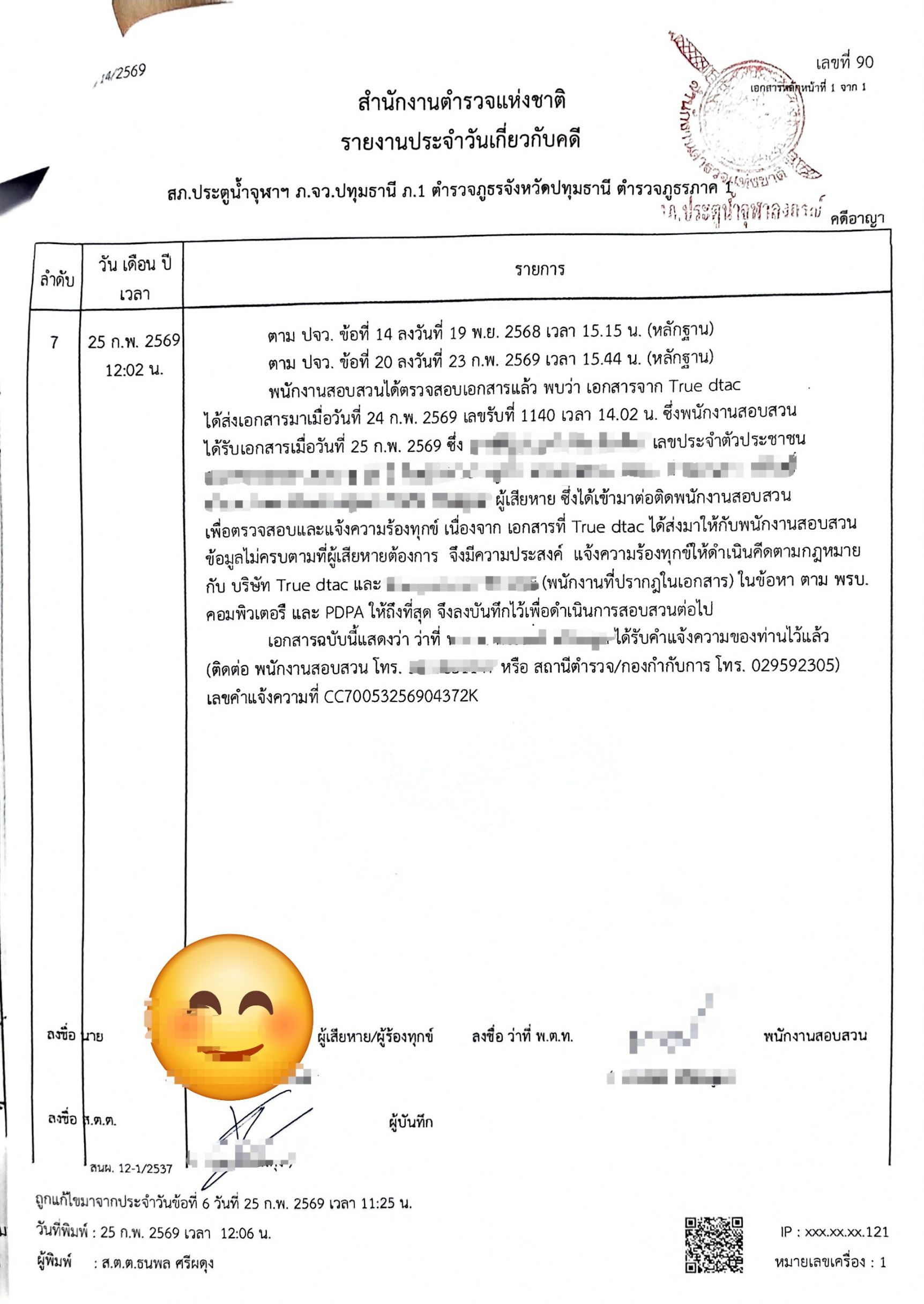 ผมได้ยื่นเรื่องร้องเรียนต่อ สคส. (PDPA Thailand) และ กสทช. (1200) เรียบร้อยแล้ว