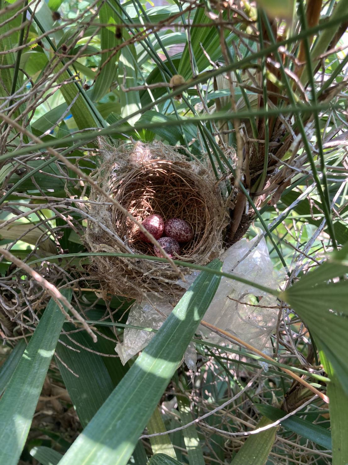 เย็นวันนึงตอนกำลังรดน้ำต้นไม้ ชำเลืองไปเห็น รังนกพร้อมไข่เล็กๆ 3ฟอง ต้มหรือทอดดีนะ เอ๊ยไม่ใช่