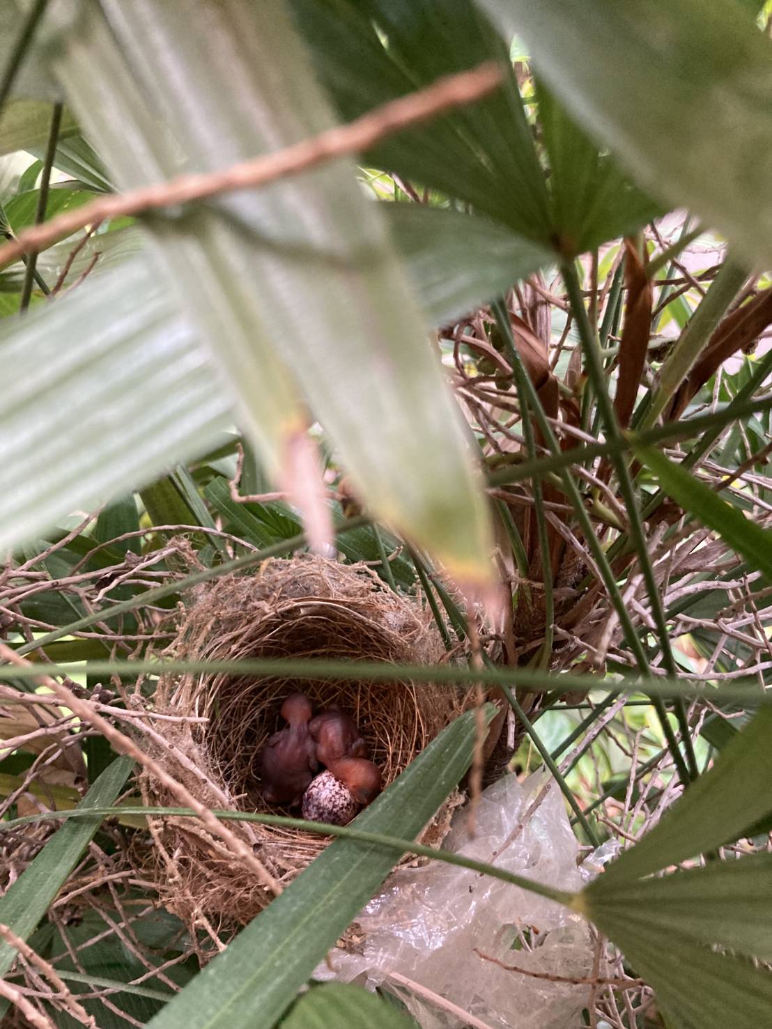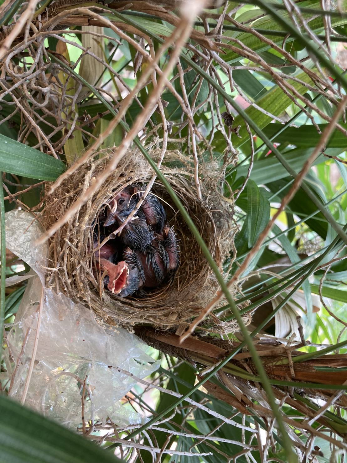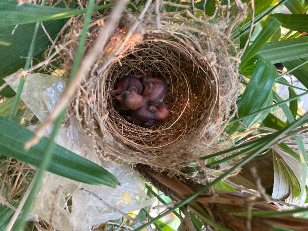 จากนั้นก็ไม่ค่อยกล้า เข้าใกล้หรือรดน้ำต้นไม้จุดนั้น เพราะกลัวจะรบกวนชีวิตที่กำลังจะลืมตาดูโลก และไม่อยากสร้างความหวาดหวั่น ให้พ่อแม่นก ที่แอบมองมาด้วยความกังวล